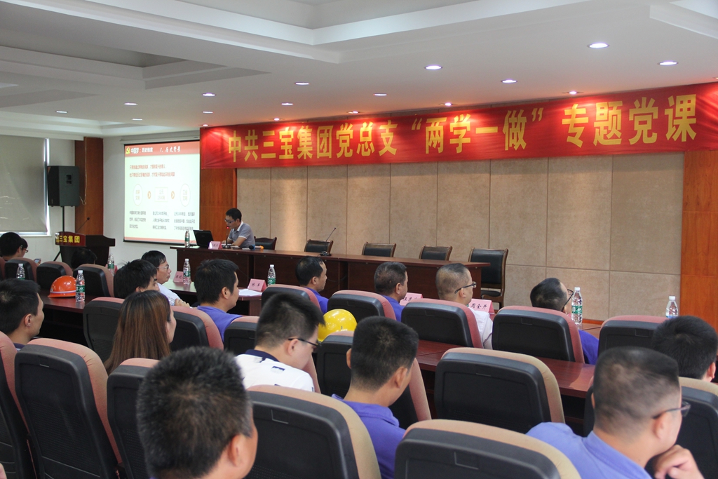2、2017年6月29日,中共三宝集团党总支开展了“两学一做”专题党课,邀请市委党校刘主任授课,公司全体党员和入党积极分子共150余人参加学习,课上紧紧围绕执政目标、执政主题、执政战略、执政部署四个主题展开,深入浅出、精彩分层,全体党员接受了一次党性的教育。