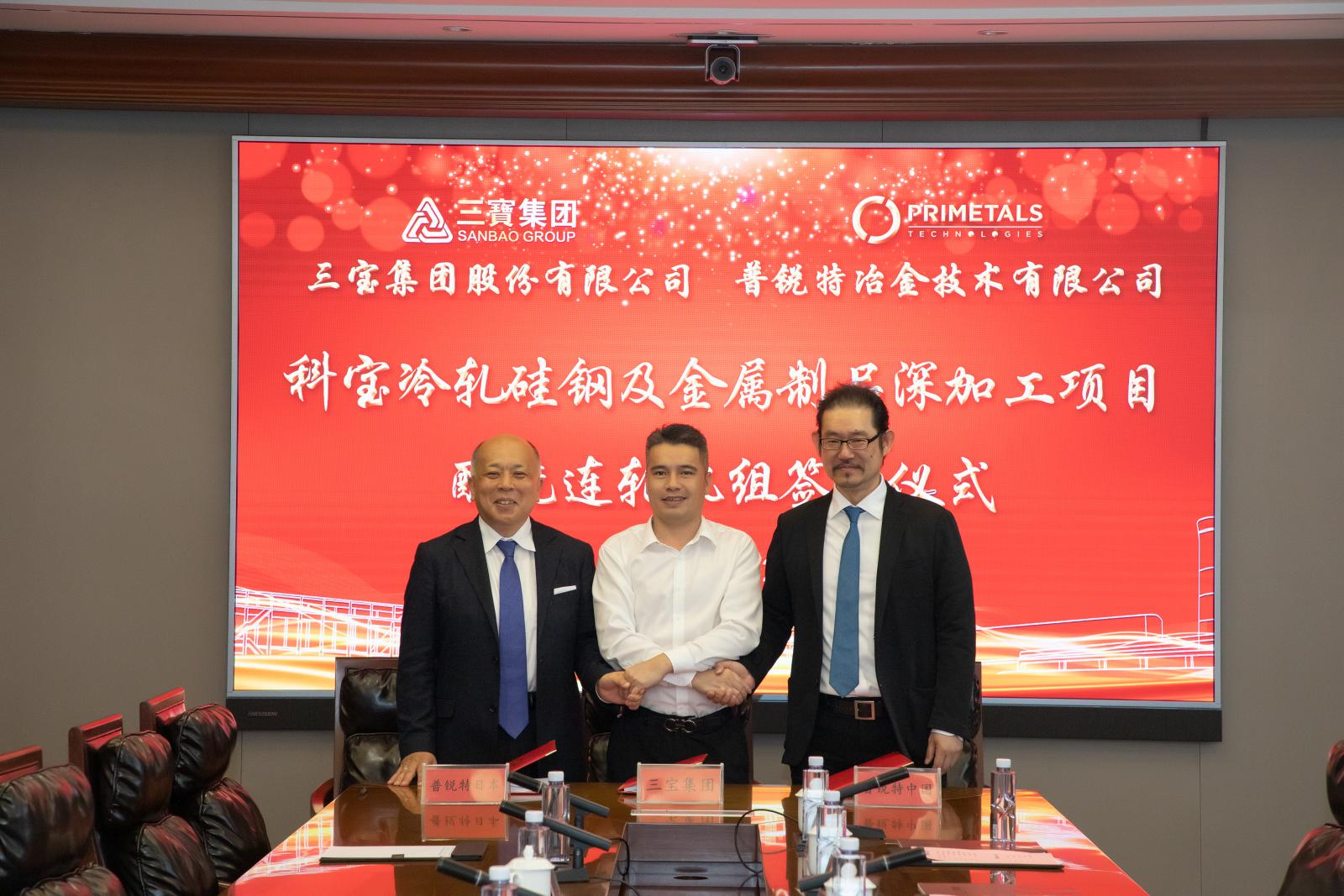 新闻中心 News 新闻中心 > 企业新闻 三宝集团与日本普锐特签订冷轧硅钢项目主设备合同 2024-04-20 4月20日上午,三宝集团与日本普锐特冶金技术有限公司成功签订冷轧硅钢项目主设备合同,标志着集团冷轧硅钢项目迈入实质性落地阶段。 冷轧硅钢项目作为三宝集团产品转型升级的战略重点,采用了国际最前沿的工艺装备技术,主要生产高磁感、高牌号新能源电工钢,镀锡板及家电板等。该项目预计于2026年春正式投产,这不仅是集团从普钢向优特钢转型的重大跨越,更是集团迈向国际高牌号硅钢领先制造企业的关键一步,将为集团的高质量发展开启全新的篇章。 编辑、审核:集团宣传组 返回