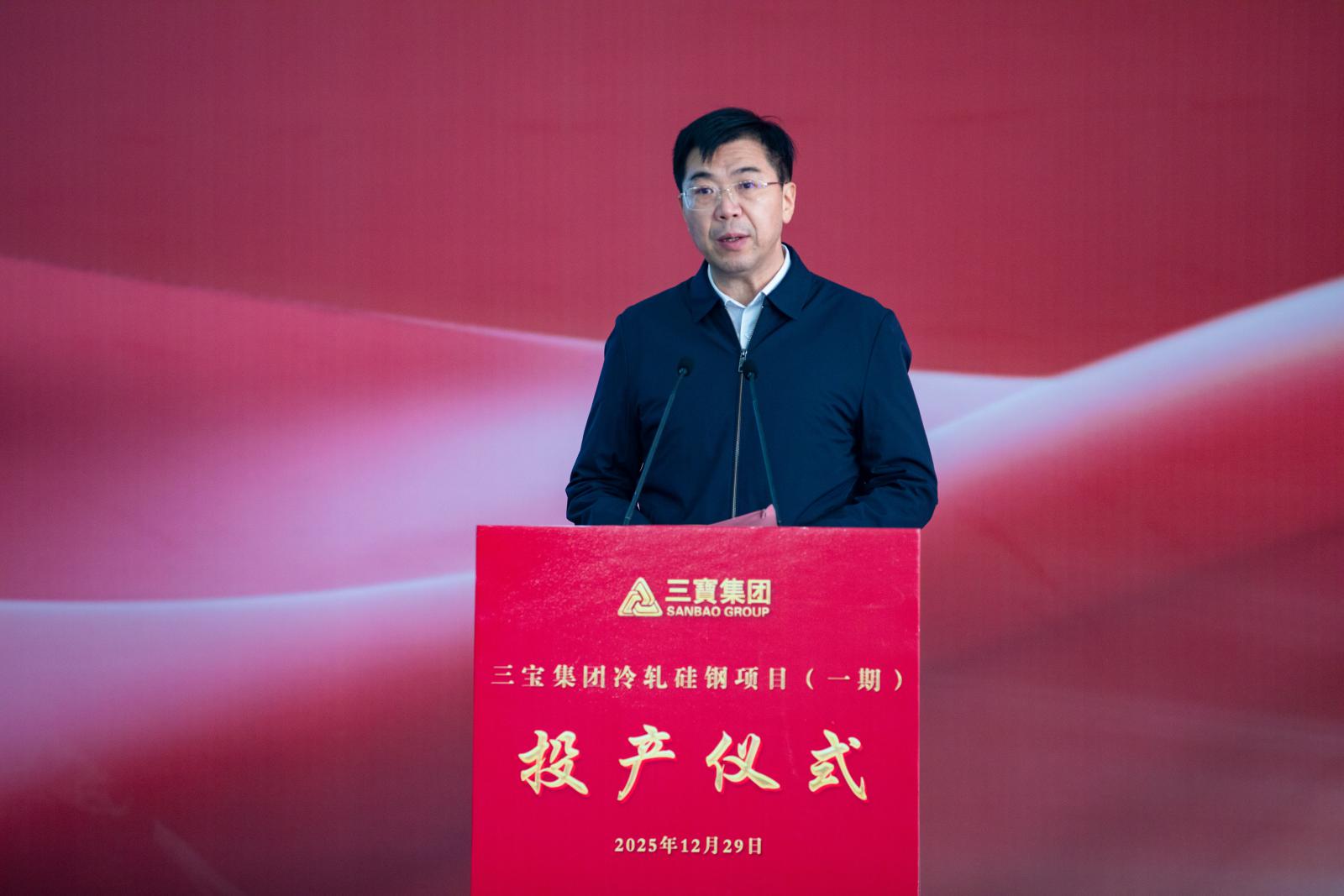 三宝集团董事长王光文在致辞中向莅临现场的各位领导、来宾表示最热烈的欢迎和衷心的感谢!向在项目建设过程中辛勤付出的全体工作人员、合作单位,致以诚挚的问候和崇高的敬意!他表示,项目一期生产线采用国内首台套小六辊六机架(UCMW)酸连轧全智能控制系统,项目从开工到投产仅用时10个月,树立起单体项目建设速度最快、质量最优的新标杆。下一步,我们将始终紧跟国家战略导向,积极落实漳州市委市政府“三头六臂”主导产业,精准发力“钢头制造”,力争在“十五五”规划中期,实现营收突破一千亿以上,打造国际一线品牌,为区域经济高质量发展贡献三宝力量!