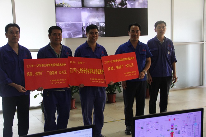 会上,公司董事长兼总经理王光文,对公司今年1-9月份各单位安全环保工作的提升给予肯定,尤其对炼铁厂1-9月份安全环保管理工作的显著提高给予表彰,并颁发奖牌和奖金,授予:炼铁厂 “2017年1-9月份安全环保优质管理先锋号”,对炼铁厂厂级领导奖励10万元、奖励分厂30万元。